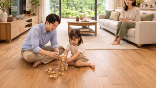 一条工務店で人気のオプション床材「ライブナチュラルプレミアム」は、無垢の質感とメンテのしやすさを両立した“挽き板”フローリングです。標準のシート系床材(モクリア)に比べて初期費は上がるものの、足触りや見た目、経年の味わいに惚れ込んで選ぶ施主...